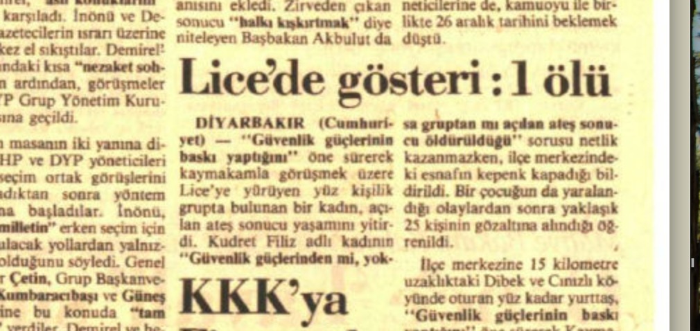 Diyarbakır’ın Lice ilçesinde 12 Aralık 1990’da yaşanan olaylarda, 15 yaşındaki Kudret Filiz güvenlik güçlerinin açtığı ateş sonucu yaşamını yitirdi. Olay, dönemin olağanüstü hal (OHAL) uygulamaları ve bölgede artan hak ihlalleri iddialarıyla birlikte İnsan Hakları Derneği (İHD) raporlarına ve Türkiye Büyük Millet Meclisi (TBMM) tutanaklarına yansıdı.