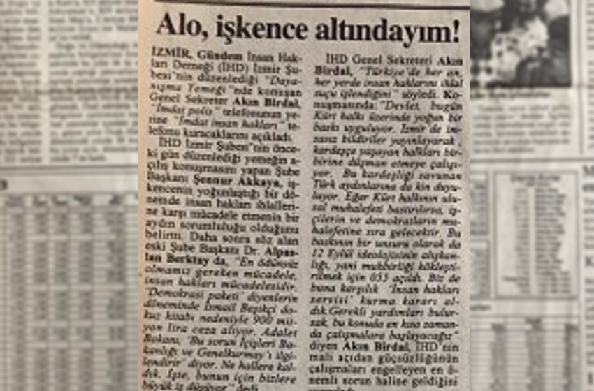 İnsan Hakları Derneği (İHD) İzmir Şubesi’nin düzenlediği “Dayanışma Yemeği”nde konuşan Genel Sekreter Akın Birdal, “İmdat polis” telefonunun yerine “İmdat insan hakları” telefonu kuracaklarını açıkladı.