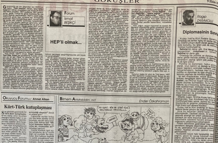 Konunun başka bir yönü de Türk basını, HEP ve PKK ilişkilerinin incelenmesidir. Bunun da ayrı bir yazıda incelemek gerekir. Yalnız, HEP ile ilgili duygu ve düşüncelerimizi bir kere daha ifade etmekte yarar görüyoruz. Yaşadığımız şu günlerde HEP’li olmak çok zor bir iştir. HEP’li olmak zor olduğu kadar da onurludur. Bin bir türlü zorlukları aşmaya, tehditlerin üstesinden gelmeye, riskleri göğüslemeye çalışan on binlerce kişinin olması, Kürt ulusunun, üzerine örtülen karanlıkları yırttığının, ayağa kalktığının en somut göstergesidir.