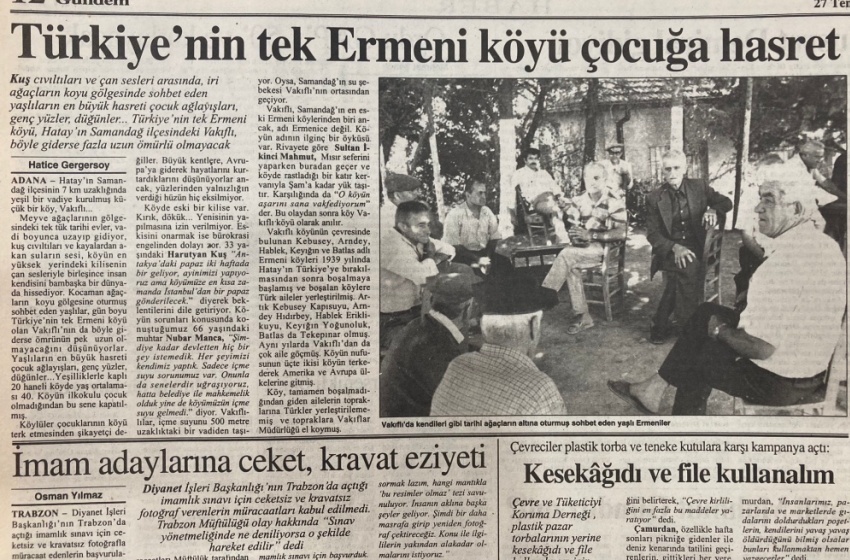 Meyve ağaçlarının gölgesindeki tek tük tarihi evler, vadi boyunca uzayıp gidiyor, kuş cıvıltıları ve kayalardan akan suların sesi, köyün yüksek yerindeki kilisenin çan sesleriyle birleşince insan kendisini bambaşka bir dünyada hissediyor. Kocaman ağaçların koyu gölgesine oturmuş sohbet eden yaşlılar, gün boyu Türkiye’nin tek Ermeni köyü olan Vakıflı’nın da böyle giderse ömrünün pek uzun olmayacağını düşünüyorlar. Yaşlıların en büyük hasreti çocuk ağlayışları, genç yüzler, düğünler… Yeşillikleriyle kaplı 20 haneli köyde yaş ortalaması 40. Köyün ilkokulu çocuk olmadığından bu sene kapatılmış.